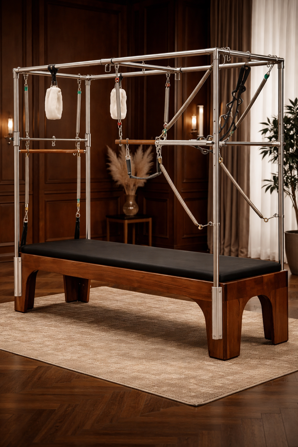 To niezwykłe urządzenie, znane jako cadillac pilates, zostało zaprojektowane z myślą o najbardziej wymagających użytkownikach. Sprzęt wyposażony jest w sprężyny, uchwyty, paski, stalową ramę i różnorodne akcesoria, dzięki którym ćwiczenia zyskują zupełnie nowy wymiar. Sprawdza się zarówno w rehabilitacji, jak i w intensywnych treningach wzmacniających czy mobilizacyjnych. Przeznaczony dla osób początkujących i zaawansowanych.
